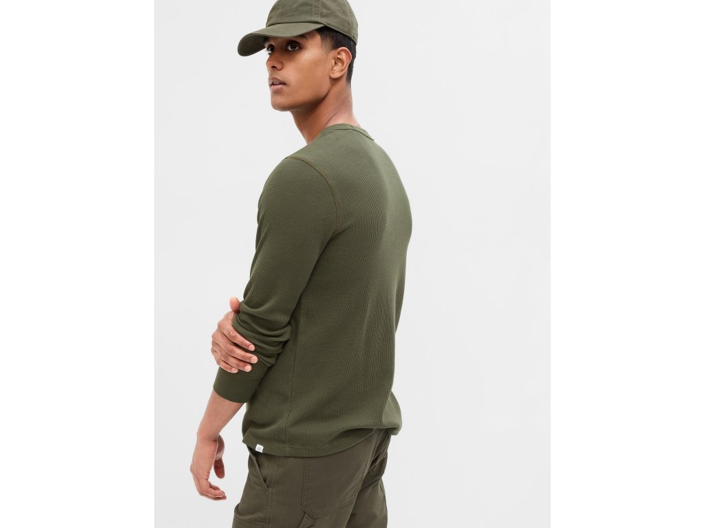 Pánské jednobarevné tričko. Dlouhé rukávy s náplety. Kulatý výstřih ke krku. Rovný střih a měkký úplet. Logo Gap.Doplňkové parametry