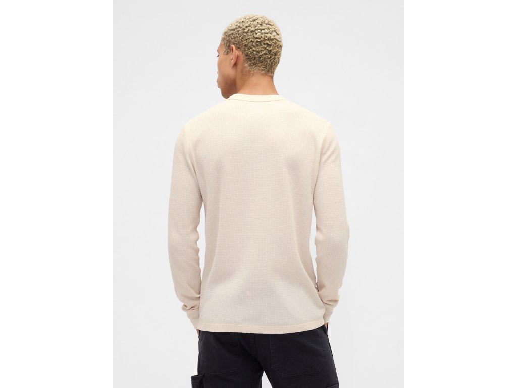 Pánské tričko s dlouhým rukávem a vaflovou strukturou nabízí pohodlí a styl v každém detailu. Měkký žerzej s jemnou vaflovou texturou je prodyšný, příjemný na dotek a ideální na celodenní nošení. Kulatý výstřih a dlouhé rukávy zakončené manžetami zajišťují pohodlný střih i praktické využití. Na hrudi je decentní logo Gap. Rovný střih pohodlně sedí, délka sahá ke kyčlím – perfektní k džínům nebo chino kalhotám. Skvělý univerzální základ na vrstvení i samostatné nošení.Doplňkové parametry