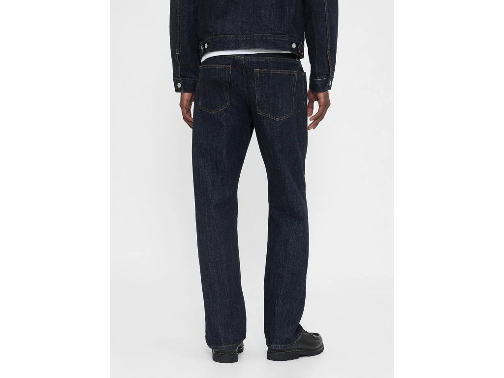 Naše džíny jsou ušity z materiálu, který se nošením přizpůsobí vaší postavě a získá jedinečný vzhled. Tento **pevný denim** bez streče je ideální pro ty, kteří hledají trvanlivost a kvalitu. Tmavý odstín a design s pěti kapsami dodávají džínům jednoduchý a univerzální styl, který se hodí ke všemu.