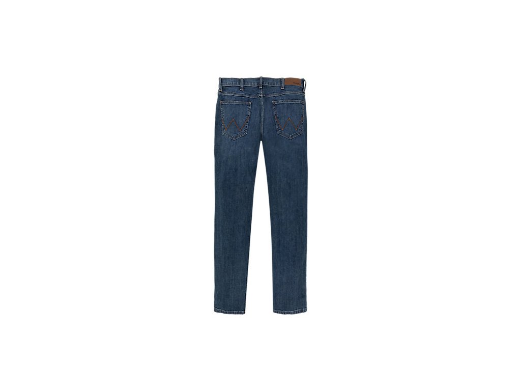 Moderní vzhled jeans dodává i tmavé prošití a na vnitřní přední kapse i štítek s logem značky WRANGLER.