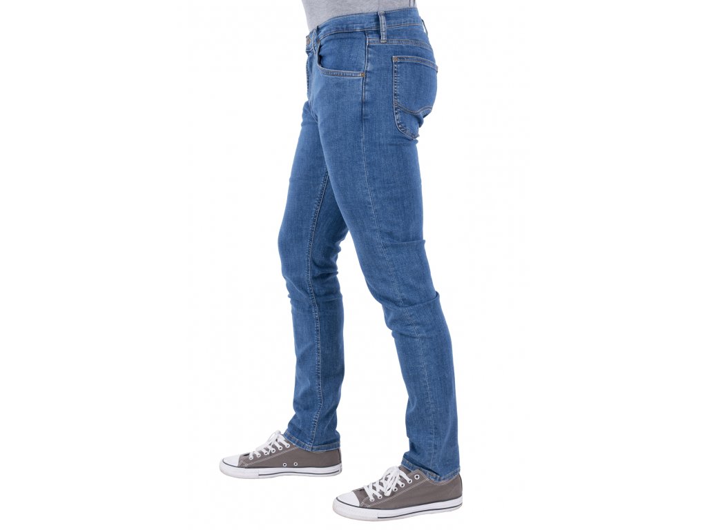 Pánské středně modré strečové džíny střihu LUKE s pravidelným pasem, úzkými nohavicemi a zapínáním na zip. Středně modrý odstín denimu doplňuje světle hnědé prošití a mosazný knoflík spolu s nýty a nechybí také hnědá kožená nášivka s logem značky LEE. Džíny mají díky svému užšímu střihu velmi moderní a elegantní vzhled a neměly by chybět ani ve Vašem šatníku. Přední i zadní kapsy jsou zesíleny za účelem vyšší odolnosti. Skvěle se hodí ke sportovnímu tričku, ale i košili. Vhodné doplnit koženým opaskem.